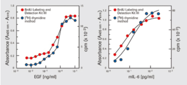 结果:图2显示BrdU 法及[3H]-thymidine掺入法在进行细胞增殖检测时显示了相同的灵敏度。