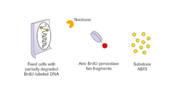 | BrdU Labeling and Detection Kit III (POD)使用比色ELISA检测细胞增殖,BrdU Labeling and Detection Kit III (POD) 是基于检测 5'-Bromo-2'-deoxyuridine (BrdU) 的96 孔ELISA 式试剂盒(图1)。BrdU 是胸腺嘧啶的非放射性类似物,其能掺入到新增殖细胞的DNA 中。同放射性同位素技术相比,BrdU Labeling and Detection Kit III有许多优势。 ■ 避免使用放射性同位素,使用更安全。 ■ 数据准确性高,实验结果同[3H]- 胸腺嘧啶掺入法高度一致(图2)。 ■ 高灵敏度,其灵敏度同[3H]- 胸腺嘧啶掺入法一致(图1)。 ■ 节省时间,通过使用多孔ELISA 读板器能进行高通量实验。 ■ 节省经费,无需再使用其他昂贵的仪器及试剂。 样品类型:96孔中培养的贴壁式悬浮细胞。
