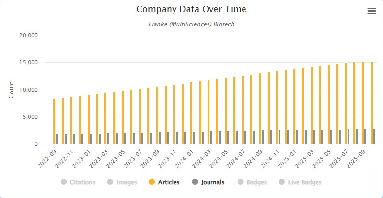 2025年下半年,联科生物开始与Bioz平台合作,经过Bioz平台检索数据,截至2025年9月,引用联科生物科研试剂的文献数量累计达到15200多篇,发表刊物总数达到2781种。