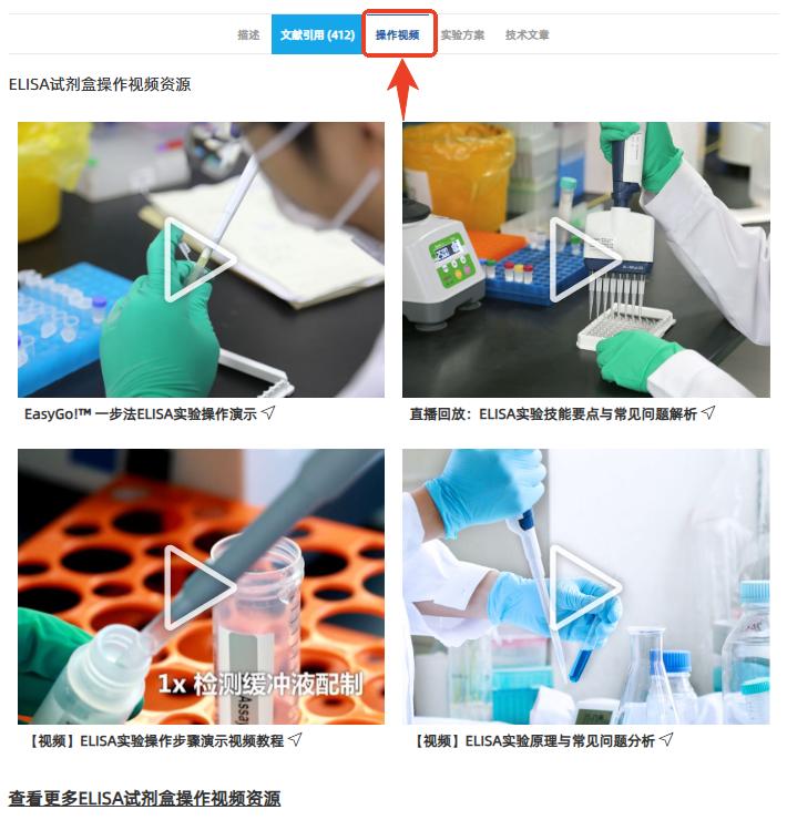 Tips: 除了引用文献模块进行了升级以外,联科生物的产品详情页面还增加了【操作视频】板块和【实验方案】板块: