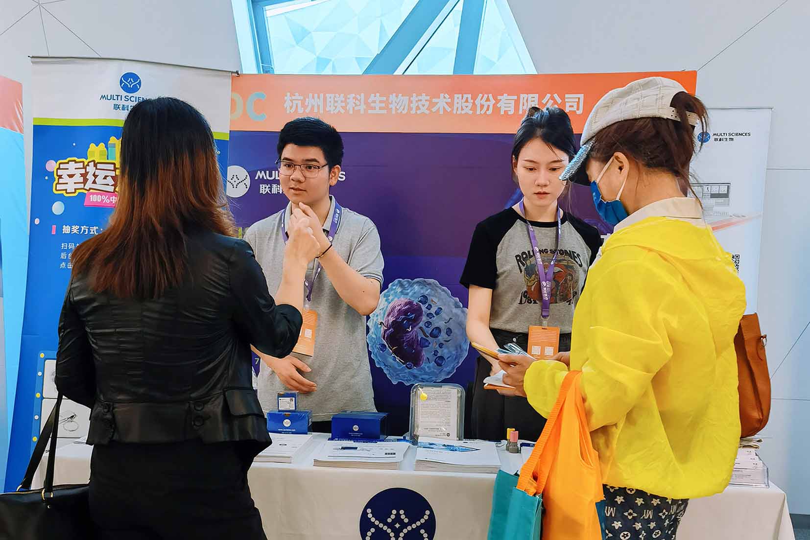 联科生物展台观众络绎不绝,气氛热烈。联科生物工作人员与各位莅临现场的专家、学者和企业用户们就EasyGo!™一步法ELISA技术和产品信息、产品应用、行业趋势、合作前景等进行了深入讨论交流。EasyGo!™一步法ELISA试剂盒得到了现场观众的一致认可与好评。