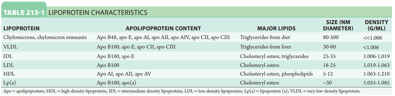 脂蛋白包括乳糜微粒(CM)、极低密度脂蛋白(VLDL)、低密度脂蛋白(LDL)、中间密度脂蛋白(IDL)、高密度脂蛋白(HDL)和Lp(a)。这几种脂蛋白颗粒密度依次变大,体积依次变小。不同种类脂蛋白中载脂蛋白成分有所不同(表1.)。