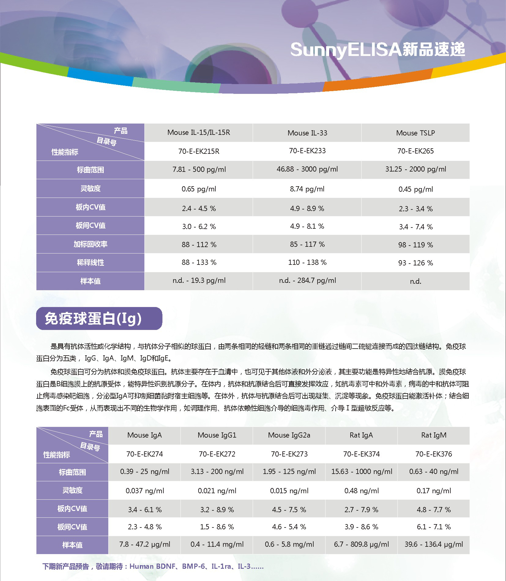 Mouse: IL-15/IL-15R、IL-33、TSLP、IgA、IgG1、IgG2a;