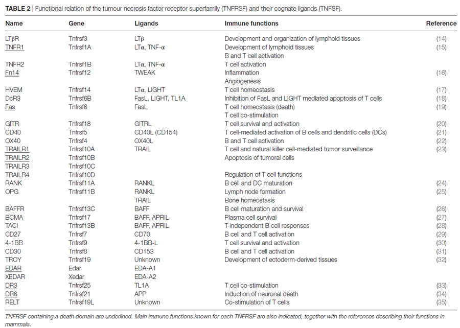 - Dostert C et al. The TNF Family of Ligands and Receptors: Communication Modules in the Immune System and Beyond. Physiol Rev. 2019. 99(1):115-160.