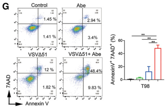 研究团队从癌症基因组图谱计划(TCGA)数据库中发现,胶质瘤中CDK4和CDK6显著上调,分析CDK4和CDK6可能是胶质瘤中联合OVs治疗的选择性靶点。之后,研究团队证明CDK4/6抑制增加了VSVD51和ZIKV在GBM细胞中的溶瘤作用。体外和体内实验表明,CDK4/6抑制对病毒复制的增强在体外和体内都是肿瘤特异性的。CDK4/6抑制通过放大细胞毒性DNA损伤应激促进肿瘤溶解。CDK4/6抑制DNA损伤修复相关基因的表达,并与OVs协同诱导损伤DNA的积累,进一步提高溶瘤治疗的效果。CDK4/6抑制联合OVs治疗在原位和皮下GBM模型中均可耐受和有效。此外,研究团队还发现VSV/ abemaciclib(一种用于治疗乳腺癌的药物)联合治疗能够增强肿瘤特异性免疫。