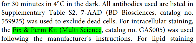 FIX & PERM Kit可对细胞悬液进行固定(MEDIUM A)和破膜(MEDIUM B),使抗体或核酸染料顺利进入胞内,并使细胞形态仍然保存完整。本产品可减少非特异性染色,并可同时加入破膜剂和荧光标记抗体进行染色。