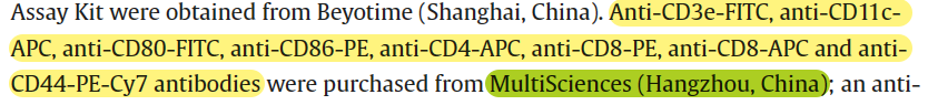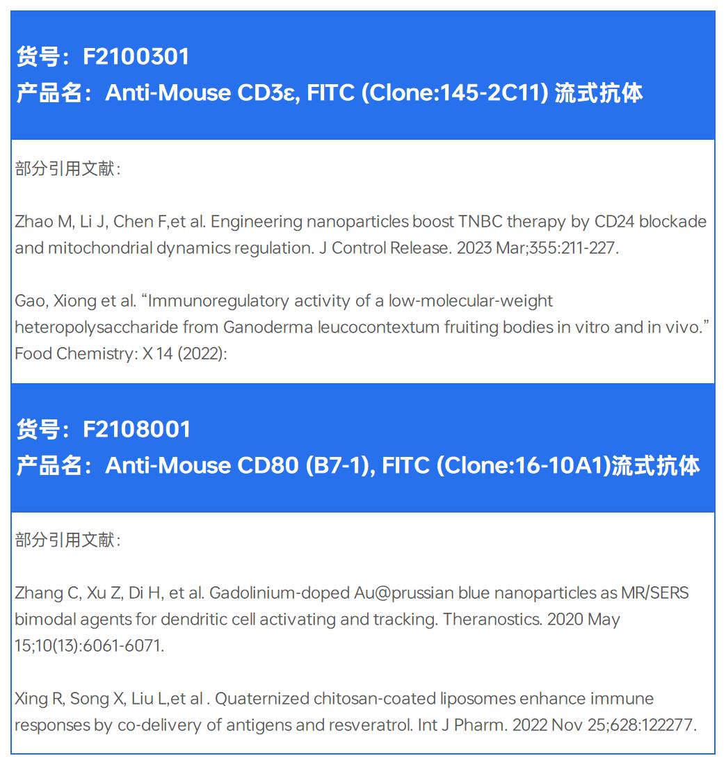 2023年9月22日,中国山东省济南市山东大学齐鲁医院神经外科和脑与脑启发科学研究所Ran Wang , Shilei Ni等老师在CHEMICAL ENGINEERING JOURNAL(IF=15.1)上,在线发表题为“Lymph node-inspired immunoregulatory hydrogel with siRNA delivery property for postoperative glioblastoma treatment”的论文,此论文使用了联科生物Anti-MouseCD3ε, FITC (Clone: 145-2C11) 流式抗体(货号: F2100301)、Anti-Mouse CD80 (B7-1), FITC (Clone: 16-10A1) 流式抗体(货号: F2108001)、Anti-Mouse CD86 (B7-2), PE (Clone: GL-1)流式抗体(货号: F2108602)、Anti-MouseCD4, APC (Clone: GK1.5) 流式抗体(货号: F2100403)和Anti-Mouse CD8α (Clone: 53-6.7), PE 流式抗体(货号: F2100802)试剂盒。