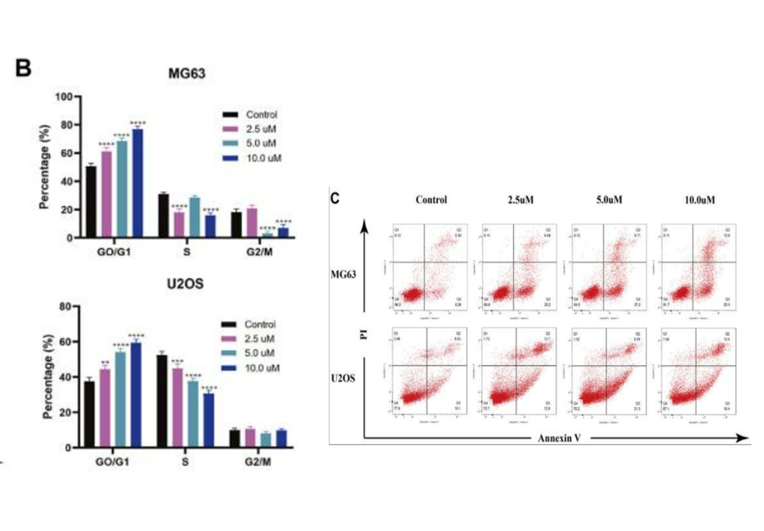 (B)Impact of AZD2014 on the OS cell cycle; (C) impact of AZD2014 on OS cell apoptosis.