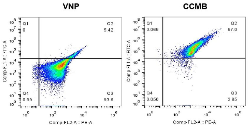 Annexin V-FITC标记的VNP(表达mCherry)和CCMB散点图