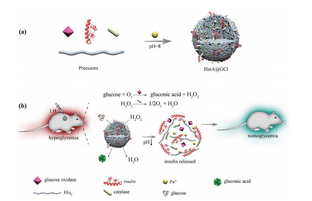 Zhou S, Yang R, Xie X, et al. pH‐Responsive Hexa‐Histidine Metal Assembly (HmA) with Enhanced Biocatalytic Cascades as the Vehicle for Glucose‐Mediated Long‐Acting Insulin Delivery[J]. Advanced Science, 2023: 2301771.