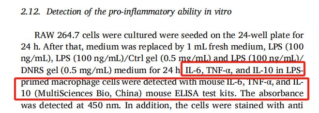 类风湿性关节炎(RA)是一种自身免疫性疾病。早期的类风湿性关节炎一般首先影响到小关节,随着病情的发展,症状蔓延到手腕、膝盖、脚踝、肘部、臀部和肩膀,最终导致骨侵蚀和关节畸形。RA微环境往往伴随着高度炎症、内源性气体水平失衡和治疗不力的恶性循环。为了打破这个循环,重庆大学、成都中医药大学、重庆医科大学附属第一医院的Wenbo Geng、Jie Zhao 、Bailong Tao等团队开发了一种双气体介导的可注射水凝胶,用于调节RA的免疫微环境,同时释放治疗药物。该研究成果在Bioactive Materials(IF=18.9)在线发表了题目为“Regulation of rheumatoid arthritis microenvironment via a self-healing injectable hydrogel for improved inflammation elimination and bone repair”的研究论文,此论文使用了联科生物Mouse IL-6 ELISA Kit(货号:EK206)、Mouse TNF-α ELISA Kit(货号:EK282)和Mouse IL-10 ELISA Kit(货号:EK210)3种检测试剂盒。