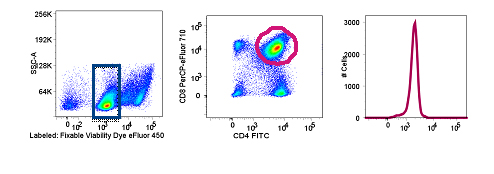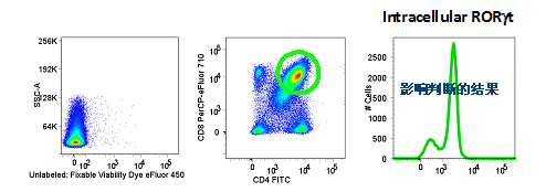 实验步骤: 1、 将Fixable Viability Dye先平衡至室温; 2、 用不含叠氮钠、血清及蛋白的PBS将细胞洗两遍; 3、 用1ml PBS(不含叠氮钠、血清及蛋白)重悬细胞,至1-10^6/ml的浓度。 4、 加入1ul Fixable Viability Dye,立即涡旋混匀; 5、 2-8℃ 避光孵育30分钟; 6、 用PBS或者流式染色缓冲液洗1~2遍; 7、 固定、破膜进行胞内染色 Note:胞膜染色在染料染色前或后进行都可。 点击我查看相关资料 实验结果示例