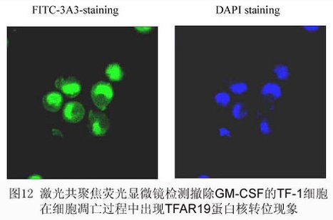 结果观察:将细胞沉淀滴片,荧光显微镜及共聚焦激光显微镜下观察TFAR19在细胞中的定位。同时用流式细胞计定量检测TFAR19蛋白的平均荧光强度。