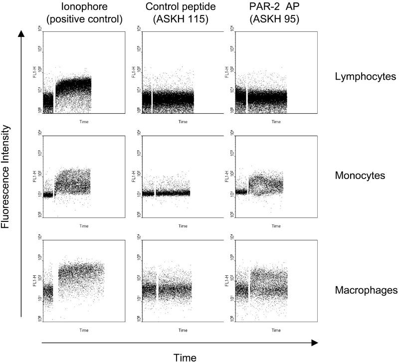 Fluo-3AM的原理:FLUO-3广泛用于长波长的荧光钙指示剂。其在506NM处被吸收,可以被氩离子激光的488nm激发光激发,便于检测。FLUO-3在没有同钙结合的情况下,无荧光产生。但是,在与钙结合后,荧光(526nm)增强至少40倍。Fluo-3 AM是一种可以穿透细胞膜的荧光染料。Fluo-3 AM的荧光非常弱,其荧光不会随钙离子浓度升高而增强。Fluo-3 AM进入细胞后可以被细胞内的酯酶剪切形成Fluo-3,从而被滞留在细胞内。Fluo-3可以和钙离子结合,结合钙离子后可以产生较强的荧光,最大激发波长为506nm,最大发射波长为526nm。实际检测时推荐使用的激发波长为488nm左右,发射波长为525-530nm。 流式操作的推荐步骤: 1、收集细胞,重悬到106个细胞。 2、(可选步骤)加入丙磺舒,使终浓度达到1-2.5 mM或苯磺唑酮,终浓度为0.1–0.25 mM。(丙磺舒可提高细胞染色效率,减少Fluo-3 AM外漏)。 3、加入Fluo-3 AM,使终浓度为0.5-5 μM(具体浓度需要自己优化),20-37℃孵育15-60分钟。 4、用细胞染色缓冲液洗涤细胞三次,加入500 ul染色缓冲液,37℃ 条件下孵育 20-30 min,确保Fluo-3 AM在细胞内完全转变成Fluo-3。但需注意此时如放37C时间较长会增加fluo3从细胞的流失。 5、Fluo-3 AM的激发波长为488nm,发射波长为525nm。 首先收集样品大约1分钟,此时可以调节FL1电压使Fluo3基线信号在50左右或者以下。 然后软件上不中止样品的收集,但是迅速把样品管取出,往管中加 入ionomycin,混匀,然后放入采集处继续采集数据大约5分钟。此时应看到信号很快大幅度上升。 附件中图片是这个流式采集应该的样子,可以只看最左边的正对照。注意该文中FL1用的虽然是对数,但是线性的话图看起来会更好些。 相关产品信息:
