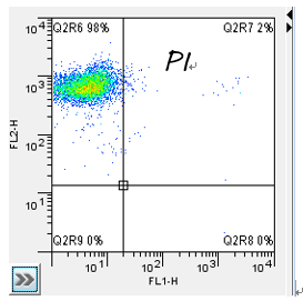 到此FITC和PI两个通道的补偿即已调整好,接下来可以直接上样本进行检测喽!其他荧光素的补偿均可参考该步骤。