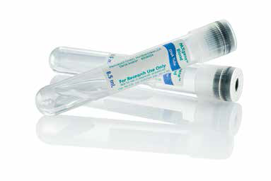 PAXgene® Blood ccfDNA Tube专业用于稳定ccfDNA 的真空全血采集管• 高分子聚合材料,结实耐用,更多安全防护措施• 有效控制溶血反应,特异性稳定血细胞,防止gDNA 的污染• 使用非交联剂用于ccfDNA 的保护,专为甲基化、突变检测等高灵敏度研究而设计• 室温稳定7 天,35°C 可稳定保存24 小时• 可负压采集10 ml 全血,特殊设计加速血液采集的速率• cfDNA 提取的同时,仍可用于白膜层gDNA 提取 |
