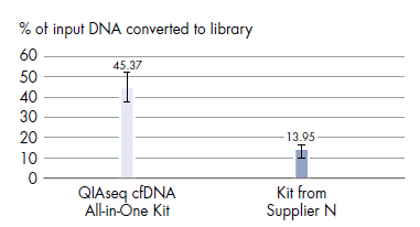 | QIAseq™ cfDNA All-in-One Kit同时包含了游离核酸提取和文库构建的一体化试剂盒• 包含了QIAGEN 经典的游离核酸提取解决方案• 优化的实验体系确保极佳的cfDNA 文库转化效率,显著提高文库浓度• 极大程度降低接头二聚体的污染,提高测序数据的利用率• 只需10 ng cfDNA 即可无需文库扩增• 适用于Illumina 和Ion Torrent 测序平台 |