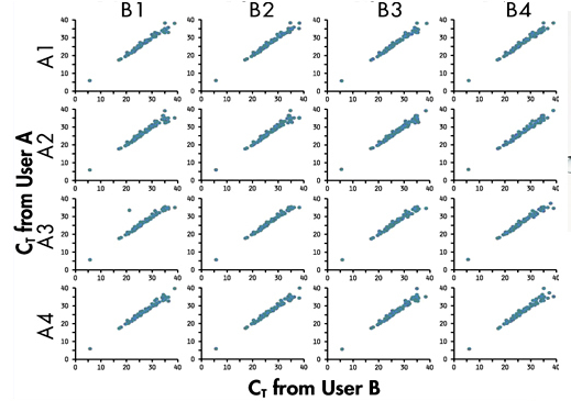 重复性 可在各种real-time PCR分析仪上使用。整个PCR芯片体系与技术上的重复性、批次和仪器有很高的相关性,平均相关系数>0.99,确保对生物样本间的表达差异进行可靠的检测 不同使用者均能获得可重复的结果:对比两位科学家(A 和B)在不同的时间使用Human Drug Metabolism RT2 Profiler PCR Arrays重复进行四次实验,获得的原始循环阈限数据(1–4)。结果表明数据间相关性很高(R2 >0.990)。 特异性 PCR芯片体系使用高品质RNA,可在预期位置形成单条带,无引物二聚体或其他二级产物,由此可获得高度准确的real-time PCR结果 每次反应都能检测到基因特异性产物:使用TGFβ/BMP Signaling Pathway RT2 Profiler PCR Array区分通用总RNA,然后进行熔解曲线分析。PCR芯片特异性检测个体基因,无论相同RNA样本中相关基因家族成员的表达状态如何。 统一的PCR扩增效率 PCR芯片能够获得高度准确的结果:使用RT2 Profiler PCR Arrays对4000基因进行分析,平均扩增效率为99%。持续的高扩增效率确保PCR芯片能够使用ΔΔCT法准确的同时分析多种基因。数据分析便利——免费的RT2 Profiler PCR Array的线上数据分析软件可分析原始的CT值,可在几分钟内得到多种形式的结果(散点图、火山图、群集图)。 未完待续…… |