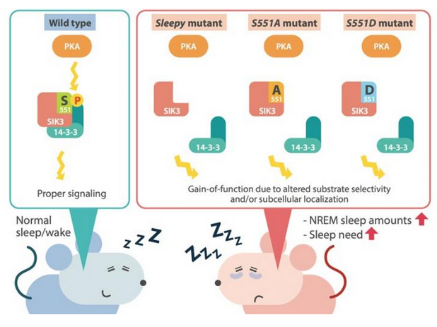 《PNAS》杂志一项最新研究指出,一种小鼠蛋白的单一突变会对小鼠的睡眠方式和清醒水平产生重大影响。这项研究照亮了人类睡眠调节和睡眠紊乱的生理机制。 筑波大学的研究人员让小鼠接触诱变剂,诱导小鼠突变以筛选睡眠障碍表型,然后鉴定诱变区域。研究小组发现,一个名为SIK3的蛋白质的特定突变可导致清醒和睡眠持续时间变化,以及反映做梦和无梦睡眠的大脑活动和清醒时的警觉性。 结果表明,睡眠和清醒时的脑波活动的特定模式反映,改变SIK3蛋白质的第551位氨基酸可使非梦睡眠时间延长,这种小鼠在夜间的清醒时间更短,而正常小鼠(夜行动物)通常是很活跃的。 “这一发现特别令人兴奋,这种突变影响的是缺乏快速眼球运动的睡眠阶段,即大部分无梦睡眠部分,而快速眼动睡眠基本上没有变化,表明SIK3参与了非常特异的睡眠调控,”文章合著者Masashi Yanagisawa说。 研究小组还关注了突变发挥作用的分子机制,他们发现,突变形式的SIK3不能结合或修饰PKA和14-3-3蛋白质等其他分子,阻止了下游信号,最终影响了调节睡眠/唤醒周期系统。 “这种蛋白质的氨基酸序列在动物王国是保守的,所以可能也能关联人类睡眠事件,”文章一作Takato Honda说。“例如,在特发性嗜睡症情况下,患者有强烈的睡眠需求,并且在白天也昏昏欲睡,就像我们研究中的小鼠一样,我们的工作有助于解释疾病原因。” 原文检索:Behavioral and biochemical dissociation of arousal and homeostatic sleep need influenced by prior wakeful experience in mice文章转载于《生物通》 |