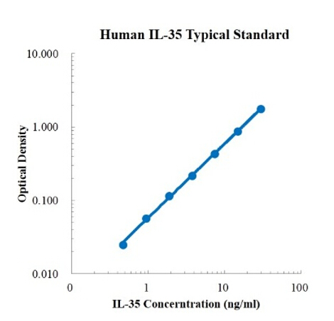 Human IL-35 ELISA Kit 产品特点: 人IL-35的最低可检测浓度为76.93 pg/ml (6次独立实验的平均值)。 ? 2. 回收率 5份健康人血清中加入3个不同浓度水平的人IL-35,未加人IL-35的血清作为本底,计算回收率。回收率的范围从95 %至119 %,平均回收率为108 %。 ? 3. 样本值 应用本试剂盒,检测30份健康志愿者的血清样本,志愿者的用药史不详。