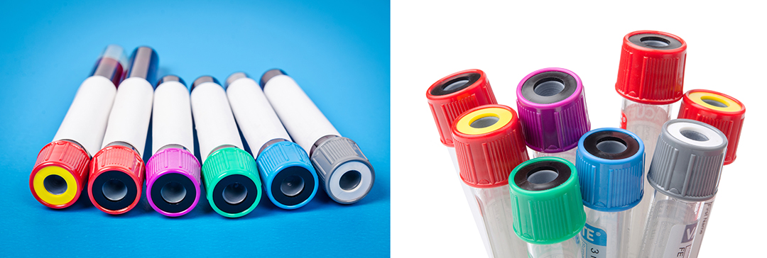 真空采血管有9个种类,头盖和标签的不同颜色代表着不同的添加剂种类和试验用途,可根据要求选择相应的试管。