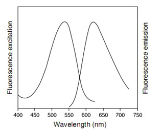 当PI与核酸结合,其荧光最大激发波长为535nm,最大发射波长为