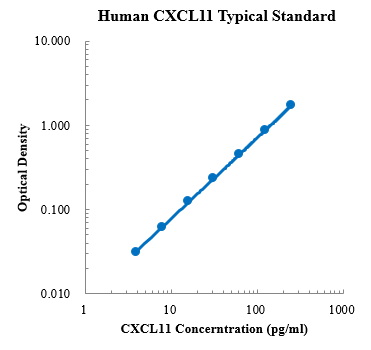 CXCL11即C-X-C基序趋化因子11,又名干扰素诱导的T细胞α趋化因子(I-TAC),是CXC趋化因子家族中的小分子量细胞因子。它的基因和许多其它CXC趋化因子家族成员一样都位于人类4号染色体上。它在外周血白细胞、胰腺和肝脏中高度表达,在胸腺、脾和肺中中等程度表达,在小肠、胎盘和前列腺组织中低度表达。IFN-γ和IFN-β可强烈诱导CXCL11基因的表达,而IFN-α对其的诱导作用较弱。
