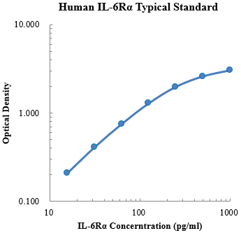 IL-6 Rα是IL-6受体的亚基,与IL-6具有较低的亲和力。IL-6与其受体高亲和力结合还需要另一个受体即gp130的参与,从而激活IL-6的生物学活性。可溶性IL-6 Rα分子量约为50kD,由膜IL-6 Rα被蛋白酶水解产生。在体外,可溶性IL-6 Rα与IL-6结合,可增强IL-6与gp130的结合活性。在体内的功能目前尚未明确。然而可溶性IL-6 Rα的升高可能与伴随着IL-6升高的疾病有关。