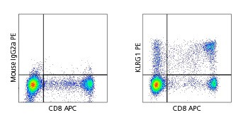 and Mouse IgG2a K Isotype Control PE (cat. 12-4724) (left) or Anti-Human KLRG1 PE (right).