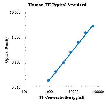 TF即转铁蛋白(Transferrin),是一种分泌蛋白,属于转铁蛋白家族,是由肝脏表达并分泌到血浆中。TF分子量约为80 kDa,包含两个特异的高亲和力Fe3+结合位点。TFs是存在于血浆中的铁结合糖蛋白,可调控生物体液中的游离铁水平,它的主要作用是从十二指肠吸收中心和白细胞巨噬细胞转运铁到其它组织。TF与先天免疫系统有关。在炎症状态下,它的水平会降低。我们常见到缺铁性贫血患者中的血浆TF水平是增加的。而铁超负荷和蛋白质营养不良患者中的血浆TF水平通常是降低的。最近,人们发现当TF受体吸引抗体时,TF及其受体可减少肿瘤细胞。TF是一种急性期蛋白,因此在炎症、癌症和某些疾病中它的水平是下降的。