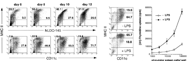3. 混合淋巴细胞反应(MLR):BMDC 具有较强的刺激能力,且成熟度越高,刺激能力越强。