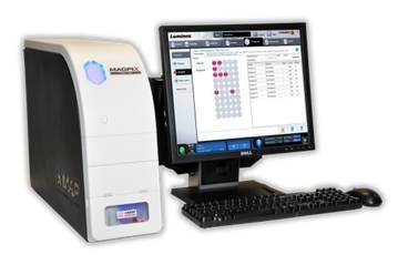 【服务项目】Luminex检测服务 【服务优势】 · 严格规范的SOP,确保实验过程无误; · 专业的数据分析,计算出浓度接近样本真实情况; · 完整地检测报告,包含真实的原始数据、专业结果分析、实验相关器材。 【Luminex 检测原理】 eBioscience的 ProcartaPlex 是基于荧光微球技术的免疫“双夹心”液相检测方法,反应原理类似于ELISA检测。该技术的核心是将直径为6.5μm的磁性微球用荧光染色的方法进行编码,通过调节红色和红外两种荧光染料的不同配比获得多达100种具有不同特征荧光光谱的微球。微球分别耦连对应指标的捕获抗体,可捕获样品中或标准品中的目标蛋白,经过孵育和洗涤,与加入的检测抗体形成“双抗夹心”结构,再与加入的链霉亲和素-PE(SA-PE)反应,最后通过Luminex xMAP仪器分别定性微球和定量分析物。 【Luminex 特点】 · 本公司Luminex仪器 Magpix,可最多同时分析50个指标 · 仅需25ul样本,一次最多可以检测100种指标 · 灵敏度与Elisa相当,优于其他蛋白定量方法 · 磁性微球,不需要使用昂贵的滤膜板,也兼容真空板架处理样品 · 适合种属:人、小鼠、大鼠、非人灵长类、猪、犬类 【Luminex 检测样本类型】 1、 细胞上清(样本中不可有沉淀) 2、 血清、血浆样本 其它类型样本可尝试实验。 注:血浆样本推荐使用柠檬酸钠抗凝。如果使用肝素,需注意肝素的用量<10IU/mL。