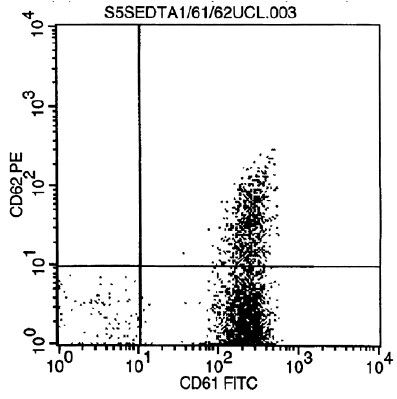 血小板(CD41 或 CD61 阳性群)的 CD62p 和 CD63 表达率均超过 5%。