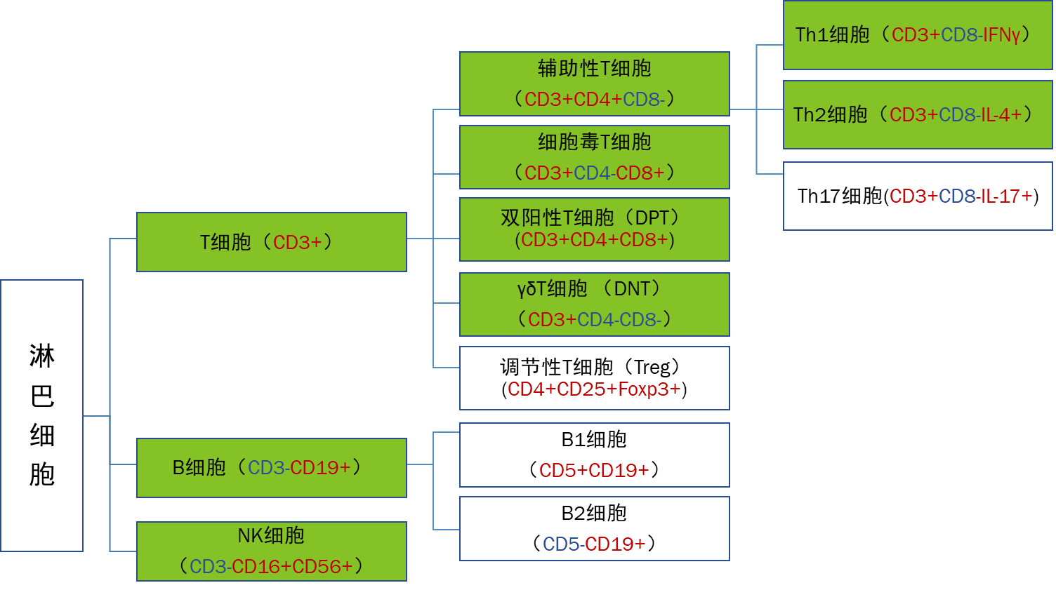 | 淋巴细胞亚群分析(T/B/NK) | CD3 CD4 CD8 CD16 CD56 CD19 CD45 |