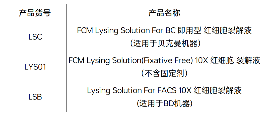 在分析血液样品时,红细胞数量过多会影响细胞群体的分析,因此,我们通常会选择合适的红细胞裂解液进行裂红。在选择裂红试剂的时候我们需要注意试剂是否含固定剂。不含固定剂的试剂作用较为温和,处理后的细胞可继续培养;而含固定剂的试剂作用较为强烈,但裂红效果相对更好,且能提高实验室生物安全性。