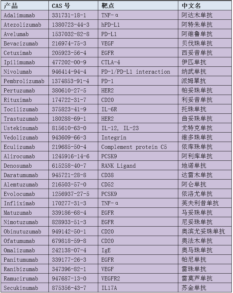 靶向抗肿瘤药物是指利用肿瘤组织或细胞所具有特异性结构分子作为靶点,使用某些能与这些靶分子特异性结合的抗体、配体等达到直接治疗或导向治疗目的的一类疗法。靶向药物可分为两类:小分子药物和单克隆抗体。近年来,单克隆抗体药物迅速发展,并逐渐成为生物医药领域发展的主要方向。 自1986年全球首个单克隆抗体——用于治疗肾移植排斥的抗cd3单抗OKT3获得美国FDA的上市批准,经过三十多年的快速发展,单克隆抗体药物已经在生物技术制药中占有重要地位,越来越多的抗体药已经被应用临于床。 单克隆抗体是由单个B 淋巴细胞克隆所分泌的抗体,由于B 淋巴细胞只能产生一种专有的、针对一种抗原决定簇的抗体,所以具有理化性质高度专一、生物活性单一、与抗原结合特异性强等特点。因此,它也被形象地被称为“生物导弹”, 现有的抗体药物大多属于此类抗体。 靶向抗体药定义了“肿瘤疗法”的新概念,涉及了肿瘤相关的多种信号通路和靶点,例如在实体瘤的治疗中,最常见的靶蛋白是表皮生长因子受体(EGFR)、血管内皮生长因子(VEGF)和表皮生长因子受体-2(HER-2/neu, 即EGFR-2)。 近年来,在“肿瘤疗法”研究中,最耀眼的莫过于免疫疗法,因此“免疫检查点”备受关注,那么何为免疫检查点呢? 在参与抗肿瘤免疫反应的T细胞活化后,其表面多种受体表达上调,与肿瘤细胞表面高表达的相应配体结合,对免疫反应产生抑制作用,从而下调肿瘤相关免疫反应的强度。这些在免疫反应过程中具有抑制免疫调节作用的位点,称为免疫检查点。 简单来说,“免疫检查点”类似于刹车系统,在免疫系统活化时能够及时“刹车”,这样免疫系统就不会过度活化。免疫检查点分子的表达和功能异常是很多疾病发生的重要原因之一,比如免疫检查点分子过度表达或功能过强,免疫功能受到抑制,机体的免疫力就低下,人就容易得肿瘤等疾病。 在肿瘤的发生发展过程中,通过抑制高表达的免疫检查点分子来增强机体的免疫功能,恢复T细胞的识别能力,从而清除或减缓肿瘤的发展进程,这种治疗方法称之为免疫疗法,其中最引人瞩目的是The programmed death 1 (PD-1) receptorPD-1/PD-L1抑制剂。迄今为止已有多个PD-1/PD-L1抗体药上市,如Avelumab(阿维鲁单抗)、Nivolumab(纳武单抗)、Pembrolizumab(派姆單抗)等,成为近年来备受关注的明星产品。 PD-1/PD-L1的抗体抑制剂也称为免疫检查点抑制剂。在肿瘤发生时,肿瘤细胞借助PDL1与T细胞的PD1结合, “欺骗” T细胞,逃避T细胞的识别,继续在体内横行霸道。而PDL1/PD1抗体则可以帮助T细胞揭开肿瘤细胞伪善的面纱,恢复其对肿瘤细胞识别和杀伤。近年来,FDA陆续批准了多个免疫检查点抑制剂的临床适应症,除了PD-1/PD-L1外,还有CTLA-4、BTLA、VISTA、TIM-3、LAG3、CD47等。 陶素可提供30种抗体抑制剂,包括以上提到的多种免疫检查点抑制剂和其他类型的靶向抗体抑制剂,满足您的实验需求,有需要的客户欢迎联系客服400-821-2233或后台留言咨询。陶素始终致力于服务“科研人员”,将最前沿的研究报道,最热门的研究产品推送给大家。 |