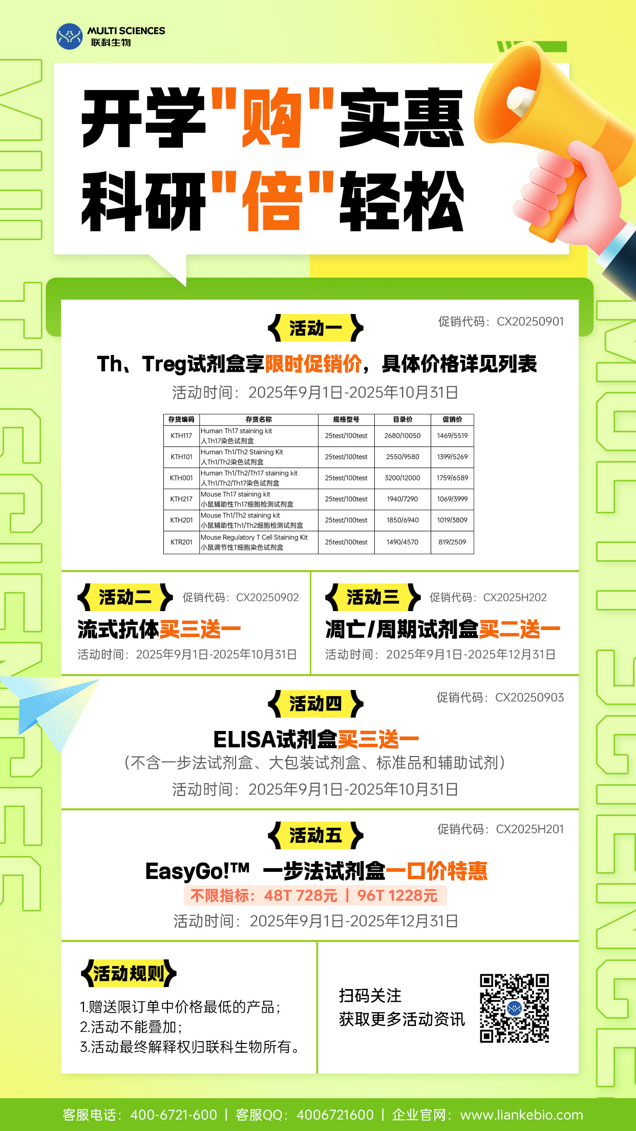 选择合适的检测技术和产品是巨噬细胞研究成功的关键。以上推荐产品可满足不同实验需求,9-10月开学季还有优惠活动,如果您在实验设计或试剂选型上有疑问,欢迎在评论区留言,我们将及时为您解答!
