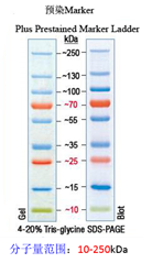 在Western实验中,蛋白Marker可以监控蛋白质在SDS-PAGE中的迁移,监控蛋白的转膜效率,确定蛋白分子量大小。选择正确的蛋白Marker是western blot实验成功的必备条件之一。蛋白Marker分为两种:一种是未预染的Marker,即宽分子量蛋白标准,高分子量蛋白标准及低分子量蛋白标准;另一种是预染的Marker,即单色预染和多色预染。