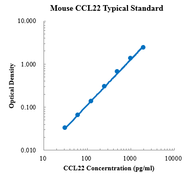 CCL22即趋化因子配体22,又名巨噬细胞来源的趋化因子(MDC),是CC趋化因子家族中的一员。B细胞、小胶质细胞、树突状细胞、巨噬细胞、单核细胞、干扰素γ激活的角质细胞、结肠上皮细胞、CD4+T细胞、胸腺髓质上皮细胞(小体)和活化的NK细胞都可表达CCL22。CCL22对淋巴细胞迁移有重要作用,它是树突状细胞、胸腺细胞和活化的NK细胞等细胞类型的有效趋化物。抗原递呈树突状细胞产生的CCL22趋化携有CCR4的活化 (或记忆)T细胞,从而增强机体的免疫应答,增加效应功能。CCL22还有其他功能,包括血小板功能的激活、抑制海马神经元之间的突触传递。
