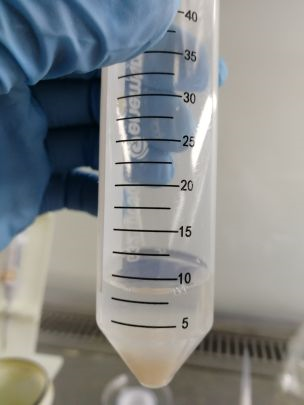 5)除去上清液,将组织碎片重悬于25 mL小肠隐窝消化液中,在冰上孵育20 min,冰盒置于20 rpm转速摇床上旋转30 min; 小肠隐窝消化液:2-5 mM的EDTA, 此步骤后可以让组织碎片自然沉降后去除上清,继续消化一次。 6)让组织碎片通过重力沉降约1 min。小心吸出并丢弃消化液,留下足够的液体以没过组织碎片; 7)将组织碎片重悬于10 mL10%FBS冷的(2-8℃)PBS缓冲液,并用移液管上下吹打三次。静置直到大部分肠组织碎片沉降到底部;