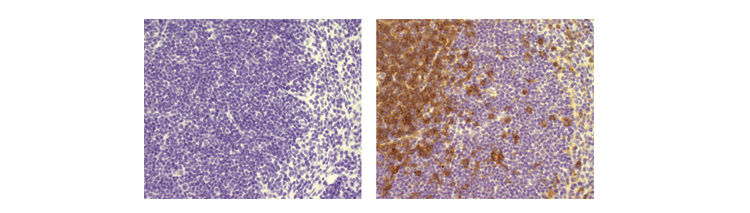 小鼠石蜡切片可以用来检测CD4了 Post published:2014-09-15 Post category:生物资讯Post views:4629 次访问 https://www.liankebio.com/article-information_Newsletter-1028.html 作者:affymetrix官网 发布日期:2014-09-15 10:00 小鼠脾脏石蜡包埋切片,左图:同型对照+抗大鼠IgG结果 右图:5 ug/mL Anti-Mouse CD4 Purified+抗大鼠IgG结果,细胞核用苏木精复染 小鼠脾脏石蜡包埋切片20 ug/mL Anti-Mouse CD4 eFluor® 570染色结果,细胞核为DAPI染色注:抗原修复方式可能各实验室不同 相关产品: Read more articles Previous PosteBioscience帮您搞定CD223(LAG-3)抗体 Next Post一种同时诊断多种癌症的方法? 你可能也喜欢 哈根达斯免费领 | 联科生物助你“安心过伏” 2018-08-07 Western化学发光检测常见问题及解决方法 2016-10-12 人Ephrin-A1/EFNA1 ELISA检测试剂盒 2016-02-16 Biovision EZCut TEV 蛋白酶—Cat#7847 2015-09-23 展会预告 | 联科生物邀您相聚第十三届(苏州)细胞产业大会 2023-11-27 联科推荐 碱性磷酸酶活性检测试剂盒 2015-07-30 流式细胞术多色荧光分析指南 2009-06-12 吸烟可引起癌旁正常肺组织的基因突变 2017-11-08