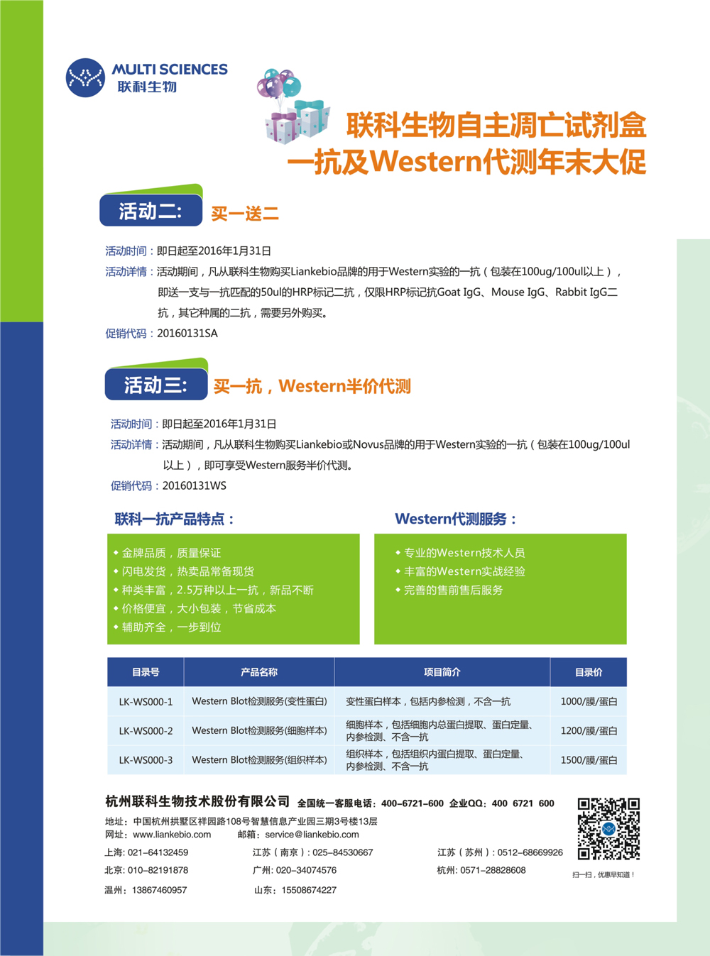 联科生物2015年末大促资料页 Post published:2015-11-16 Post category:生物资讯Post views:3458 次访问 https://www.liankebio.com/article-information_promotions-1648.html 作者:联科生物 发布日期:2015-11-16 10:00 Read more articles Previous PostELISA常见样本收集处理方法 Next PosteBioscience MagniSort免疫磁珠细胞分选产品 你可能也喜欢 Western Blot常见问题分析与解决在线讲座预告 2017-11-23 EasyGo!™ 一步法ELISA实验操作演示 2025-09-19 Biovision血清组分Serum components分析 2014-10-26 抗生素增加了小鼠对多种病毒的敏感性 2018-04-09 联科生物第三季ELISA交流赛(军事医学研究院站) 2017-10-27 还找不到合适的蛋白酶抑制剂吗? 2015-10-13 联科精选:Human IL-16 ELISA检测试剂盒 2016-09-05 速戳丨产品促销,最低1折! 2023-05-05