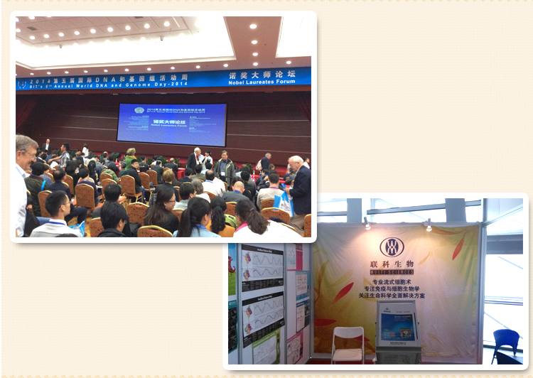 | 2014年4月25日-28日,联科生物成功参展于大连举办的第六届国际抗体大会,本届会议的主题为抗体研发与治疗新纪元。 与本次大会同时举办的还有第五届国际DNA和基因组活动周、第七届国际生物技术大会、第七届国际蛋白质和多肽大会、第六届国际疫苗大会、第五届国际工业酶和生物催化大会、第四届国际分子与细胞生物学大会、第三届工业大会。八会合办,盛况空前。