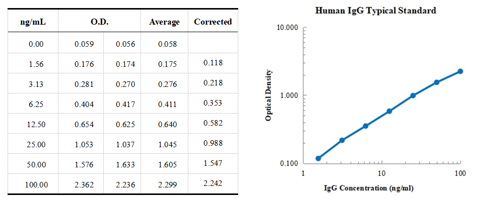 每次检测,每块酶标板都必须设立标准曲线。下面的标准曲线仅作为示例参考。