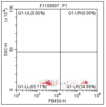 图4. 人外周血染色 Anti-Human CD45, mFluor 450(F11045A07/2)的结果。