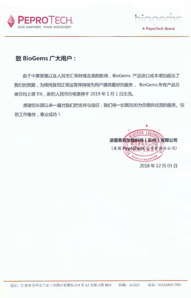BioGems产品涨价通知 Post published:2018-12-06 Post category:生物资讯Post views:4199 次访问 Read more articles Previous Post联科生物流式抗体上市200天小记 Next PostMTT 实验心得体会 你可能也喜欢 抗生素增加了小鼠对多种病毒的敏感性 2018-04-09 Vitronectin(玻璃粘连蛋白)5折购再送Y-27632 2019-02-22 学术风暴之中国神经科学学会第十二届全国会议 2017-10-23 ELISA试剂盒推荐:血管内皮细胞生长因子受体 2015-12-09 怎样正确溶解与稀释ELISA标准品? 2016-10-10 精彩回顾丨联科生物第九届ELISA技能大赛圆满收官! 2024-01-23 论文分享 | 新发现!一种作为葡萄糖介导的长效胰岛素传递载体 2023-08-30 联科生物 3+1特惠活动开始啦已结束 2025-03-28