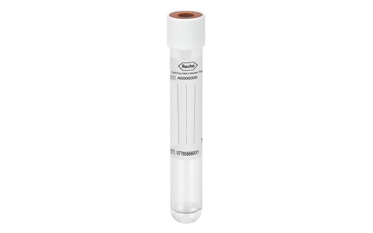 | 血中游离DNA简称循环核酸(circulating nucleic acid),是指循环血中游离于细胞外的部分降解了的机体内源性DNA。 血中游离DNA在疾病的早期诊断、预后、监测等方面具有重要潜在价值。其具体医学应用大致包括以下方面: 1. 用于产前诊断;对胎儿游离DNA的检测可辅助判断胎儿患染色体异常遗传疾病(如21-三体唐氏综合症)的风险 2. 用于免疫性疾病等非肿瘤类疾病的病情分析与疗效观察; 3. 用于肿瘤相关分析。 其中在肿瘤分析中的价值尤为重要。目前越来越多研究结果发现:ctDNA检测作为一种无创的检测方法,能够真实的反映实体瘤组织中的基因突变图谱与频率,是治疗效果的评估及治疗后临床随访的重要监测指标。 那么,游离核酸的准确获得就成为了十分关键的因素之一。 罗氏游离核酸取样管专为含游离核酸(如胎儿游离核酸cell-free fetal DNA或循环肿瘤游离核酸circulating tumor DNA等)的全血样本收集、储存和运输所设计,能够有效防止全血样本细胞破裂导致基因组DNA释放而稀释游离核酸在其中的比例,同时在18oC-25oC条件下能保持游离核酸样本长达7天不降解[1],从而使后续的检测结果更准确,应用更广泛。