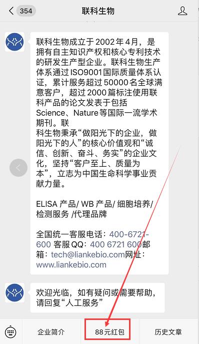 1. 长按二维码识别或关注“联科生物”微信公众号