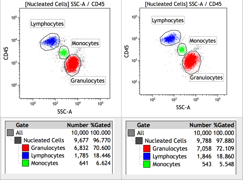 各位做流式的小伙伴,你们是否还在为样本保存苦恼呢?敲黑板,重点来了! 流式检测的样本应保持新鲜,但在实际中难以做到,也会增加重复工作。通常认为,EDTA抗凝的样本可保存3天,肝素抗凝的样本最长保存5天。但实际上,由于样本运输、保存不当等因素影响,即使在保存期限内,样本仍会出现细胞形态改变、抗原表达下降等现象,从而造成检测结果的不准确。 联科生物流式专用保存液,对流式样本(外周血、骨髓、胸水、腹水、脑脊液、组织悬液等)具有保护作用,可较长时间保存,保证样本质量和抗原表达的稳定性。 以外周血样本为例: 1. 正常人外周血在流式专用细胞保存液中保存49天,粒细胞、单核细胞、淋巴细胞均能保持相当好的稳定性; 2. 选取49天中间隔2周的样本进行对比,各类细胞的SSC以及各抗原的表达均无显著差异; …… 赶紧入手,给你的样本换个更舒适的环境吧