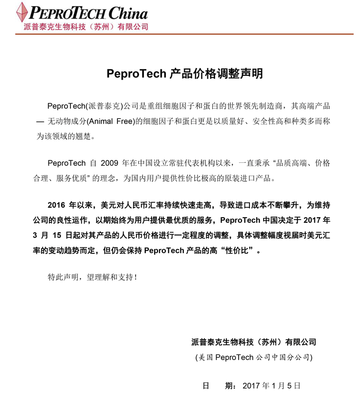 PeproTech产品价格调整声明 Post published:2017-01-05 Post category:生物资讯Post views:3922 次访问 https://www.liankebio.com/article-information_Newsletter-1323.html 作者:PeproTech官网 发布日期:2017-01-05 16:00 Read more articles Previous Post大写的慷慨!这些科研神器免费用! Next PostPeproTech TGF-β1/β2/β3 产品介绍 你可能也喜欢 Life Technologies氧化应激产品 2014-04-18 实验小鼠品系特征简介 模式生物BALB/c小鼠 2016-10-17 罗氏PCR扩增产品选择指南 2015-07-15 BioVision推荐:抗体和蛋白纯化树脂 2018-07-03 ThermoFisher高级仪器经理李彩霞莅临联科生物 2016-10-20 手把手教你做免疫共沉淀实验 2018-02-05 论文分享 | 联科凋亡试剂助力巨噬细胞机理研究 2024-05-27 罕见免疫细胞竟是阻止癌症扩散的有力武器 2018-03-06